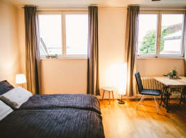 Komfortable Möblierung und eine moderne, liebevolle Ausstattung erwartet Sie in unseren klimatisierten Ferienwohnungen im Dachgeschoss des historischen Hauses in der Martinstraße in Bingen. Die Küchen sind mit Geschirr, Wasserkocher, Toaster und Kaffevollautomat ausgestattet. Alle Kühlschränke verfügen über ein kleines Eisfach. Wir haben Ihnen Kaffebohnen, Tee, Zucker und Gewürze bereitgestellt. Im gesamten Gebäude gibt es eine WLAN-Verbindung. In allen Appartements steht Ihnen ein Fernseher zur Verfügung. Bettwäsche und Handtücher sind natürlich inklusive...